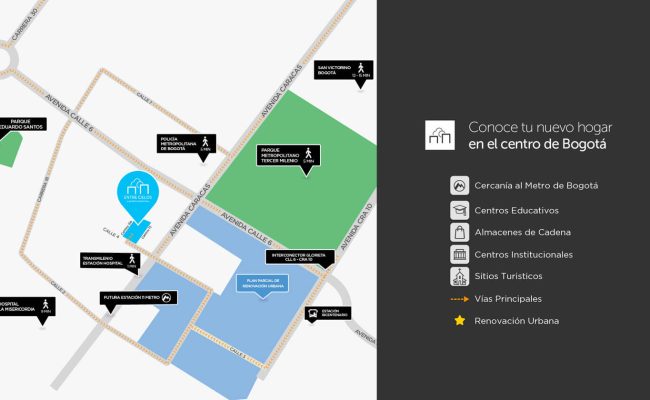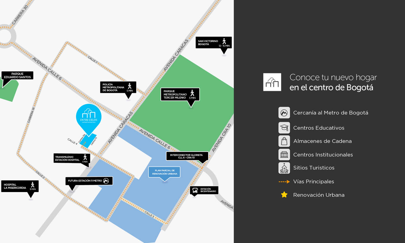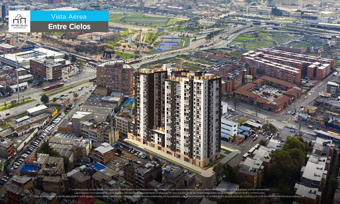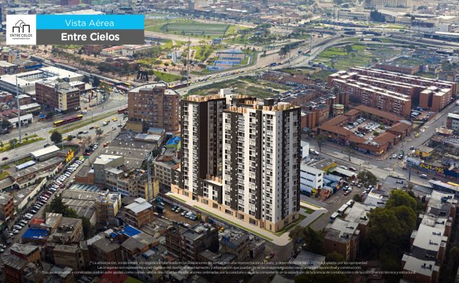 Entre Cielos es nuestro proyecto de vivienda de interés social en Bogotá, está ubicado en el centro de la ciudad en la Cra 15a # 4 – 36.